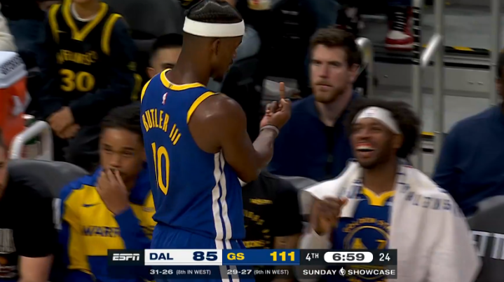 结束客场之旅,勇士在主场大战独行侠,巴特勒终于迎来勇士生涯的主场首秀,第一节7分39秒巴特勒空切双手暴扣拿到主场首秀的第一分,这一球彻底点燃了球队的进攻,库里里突外投火力全开,勇士一波16-0扭转局面;面对独行侠的反扑,巴特勒招牌中投以及造犯规,波杰和桑托斯输送火力,勇士一波流扩大领先,首节33-18领先15分,首节库里10分3篮板2助攻,巴特勒8分。